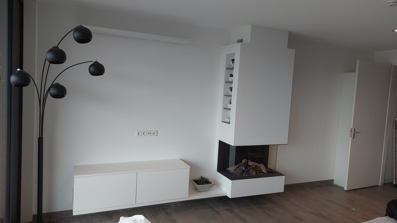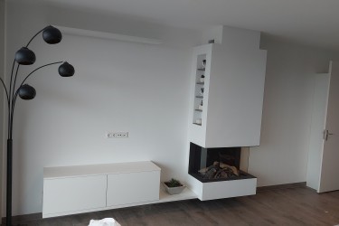 Meerdere van onze klanten willen graag een wandmeubel met geintergreerde haard. Uiteraard niet om dat ze het slepen met hout zo leuk vinden, of de op rook mopperende buren, maar de echte sfeer en dat in combinatie met jouw unieke meubel, of haardpartij